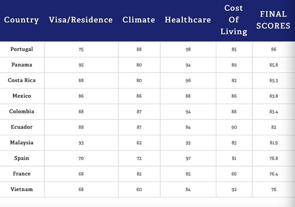 该项指数综合了生活成本、居留身份难易度、气候和医疗保健等诸多因素做出评判。杂志执行主编 Jennifer Stevens着重指出,葡萄牙居民非常友善,当地生活节奏慢,生活成本在可承受范围内,生活质量尤为出色。
