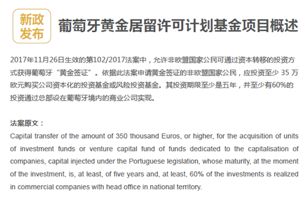 葡萄牙基金获得法案支持,因此不会随意变动,以保障投资人顺利拿到欧盟身份。