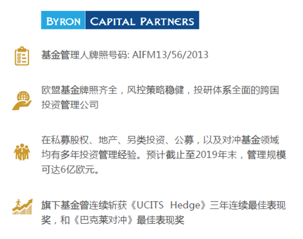 JWP基金管理人Byron Capital Partners Limited公司为世界知名百强企业,曾获得众多国际奖项。在2018年世界百强优秀金融企业名单中,除了byron,还有苹果,亚马逊,阿里巴巴,蚂蚁金融,百度,新华社等知名企业。