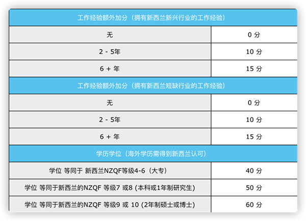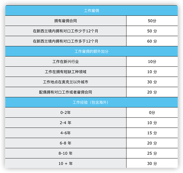这个签证采取的也是打分制,分数需满足160分以上才能被筛选中,获得技术移民邀请函。下面是新西兰技术移民的打分表,大家可以先根据自己的情况进行打分,看能否达到160分的及格线。