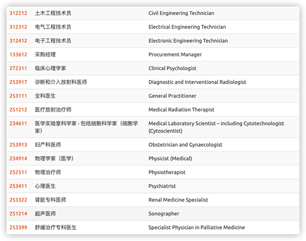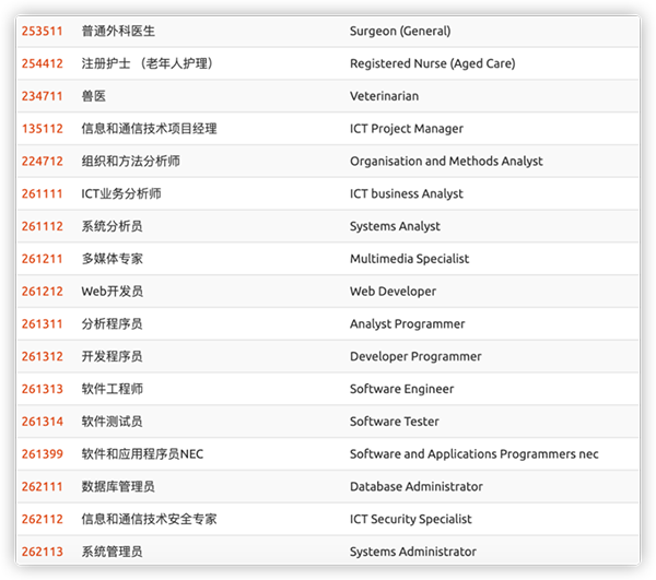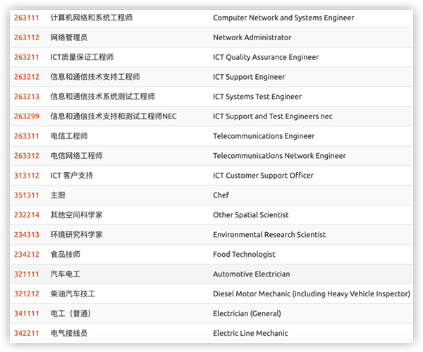 新西兰技术移民的申请成功还有一个关键因素就是职业。新西兰移民局会根据实际情况优先选择紧缺的热门职业,下面这张职业列表上的都是比较容易获批的。