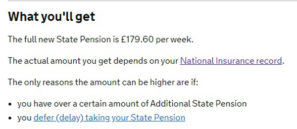 国家养老金的领取与工作时缴纳国民保险费的年限有关,和工资、缴费无关,国家养老金额都一致。即使退休身在国外,也不影响领取。任何缴纳了至少十年国民保险的人都可以领取养老金,缴费记录35年以上可领取全额养老金(目前为一周179.6镑),不到35年就相应减少,如果退休前缴费记录不到十年,则不能领取。