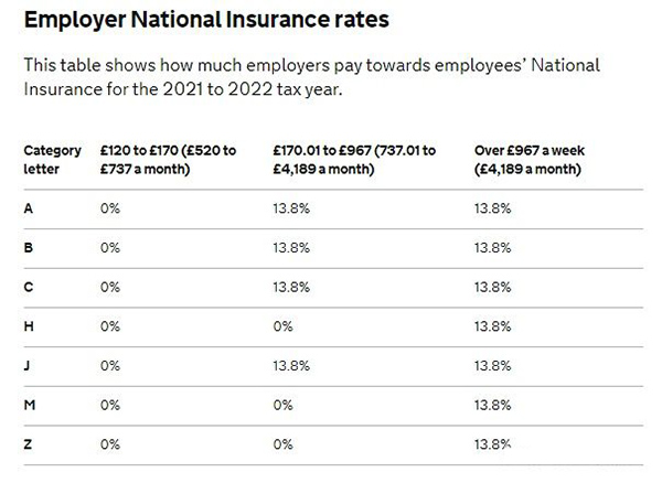 NI缴费金额以周薪收入为基准,雇主按雇员收入的13.8%缴纳,雇员缴纳比例为收入低于967英镑/周部分按12%缴纳,高出部分按2%缴纳。如果是特殊人群,缴费比例会有减免。