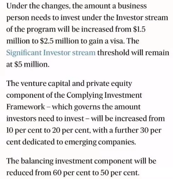 根据澳洲权威媒体报道,为了吸引更高质量的移民人群,澳大利亚颁布了一份提升移民质量计划,投资人将额外支付100万澳币投资才能获得移民签证。澳大利亚移民部长亚历克斯•霍克(Alex Hawke)将在本周三确认这一计划,并将于2021年7月1日起执行。下面方舟移民小编带大家来看看有哪些地方即将要调整。