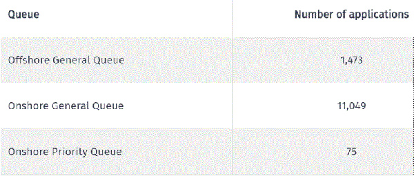 移民局公布的数据:在岸普通队列中未分配的技术居留申请的数量共有11049份,优先队列为75份。