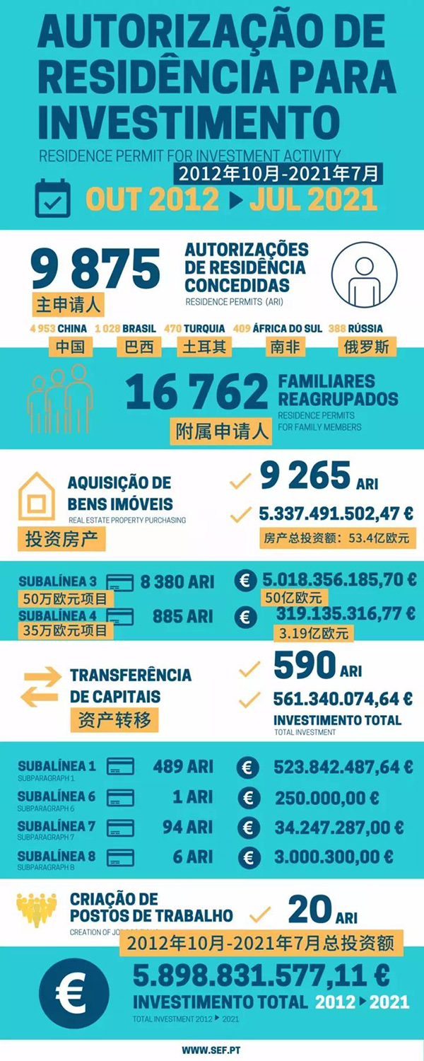 截止到2021年7月,获批主申请人达9875位,中国籍投资者比例过半,其中中国申请人为4953人。共吸纳了59亿欧元投资,其中53.4亿资金直接投资于房地产市场。