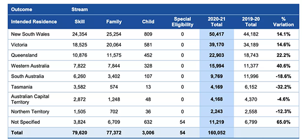 2020-21财年最热门的移民定居地仍然是新州和维州。