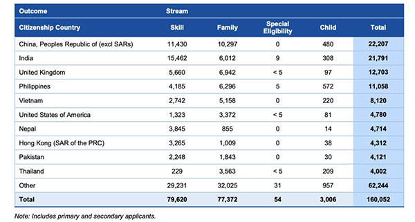 2020-21财年,中国大陆新移民的数量最多,成为澳大利亚第一移民来源国。