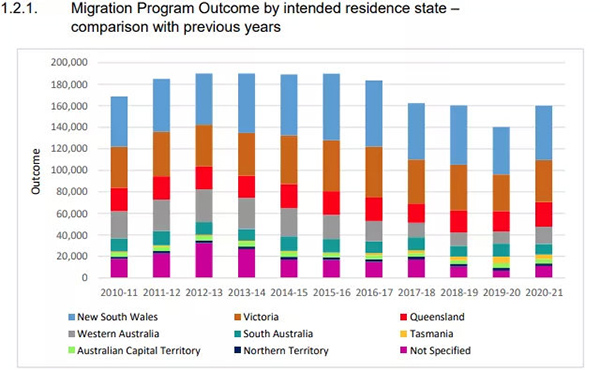2020-21财年最热门的移民定居地仍然是新州和维州。