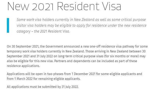 2021居民签证(2021 Resident Visa)申请将分两个阶段开放,时间分别是2021年12月1日和2022年3月1日。有资格的第一批申请者将会在10月底收到邮件通知。所有申请必须在2022年7月31日前提交。