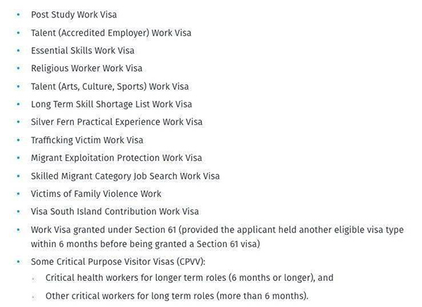 此外,那些在2021年9月30日至2022年7月31日期间持长期关键目的(long-term critical purpose )签证(6个月或以上)抵达新西兰的人也可能有资格获得这种新居留签证。伴侣和受抚养子女可以包含在居留申请中。
