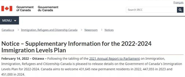 2022年2月,加拿大公布最新移民配额,2022-2024年移民水平计划要求在未来三年的每一年都提高移民配额,"百万移民计划" 增至130万!加拿大2022年将迎来431,645个永久居民的配额!
