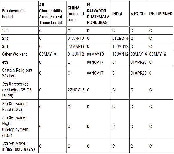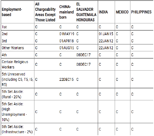 在美国移民2022年7月职业移民排期表表A中,除了EB-2排期前进1个月以外,各类别均无变化。对于中国大陆出生的申请人来说: